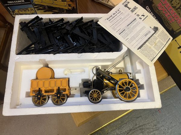 We have for sale a Hornby 3½" Gauge live steam model of the Stephenson's Rocket locomotive, it has been used only once, comes complete with a boxed G104 Coach, and a set of points again boxed, the set is complete with track and oiler, in brand new condition it is ready to run, I am happy to deliver for a small fee or pack and post nationally, can be viewed at The Old Cornmill Bretherton